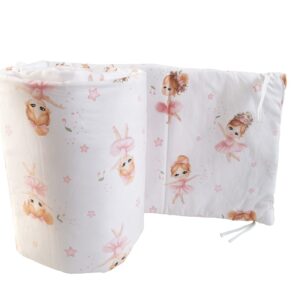 Add to basketBedbumper De afmetingen van de bedbumper: 180x30cm (+/- 3 cm)De bumper is gevuld met zeer pluizige siliconenvulling om te beschermen tegen verwondingen.Het heeft banden (touwtjes), waardoor je het veilig aan het bedje kunt bevestigen.De buitenste schil van de beschermer is 100% katoen.De bumper is gemaakt van gecertificeerde materialen van de hoogste kwaliteit.