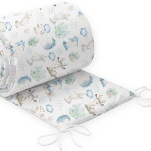 Add to basketDe afmetingen van de bedbumper: 180x30cm (+/- 3 cm) De beschermer is dubbelzijdig: aan de ene kant zit zacht Minky-materiaal en aan de andere kant katoen in verschillende patronen. De bumper is gevuld met zeer pluizige siliconenvulling om te beschermen tegen verwondingen. Het heeft banden (touwtjes), waardoor je het veilig aan het bedje kunt bevestigen. …