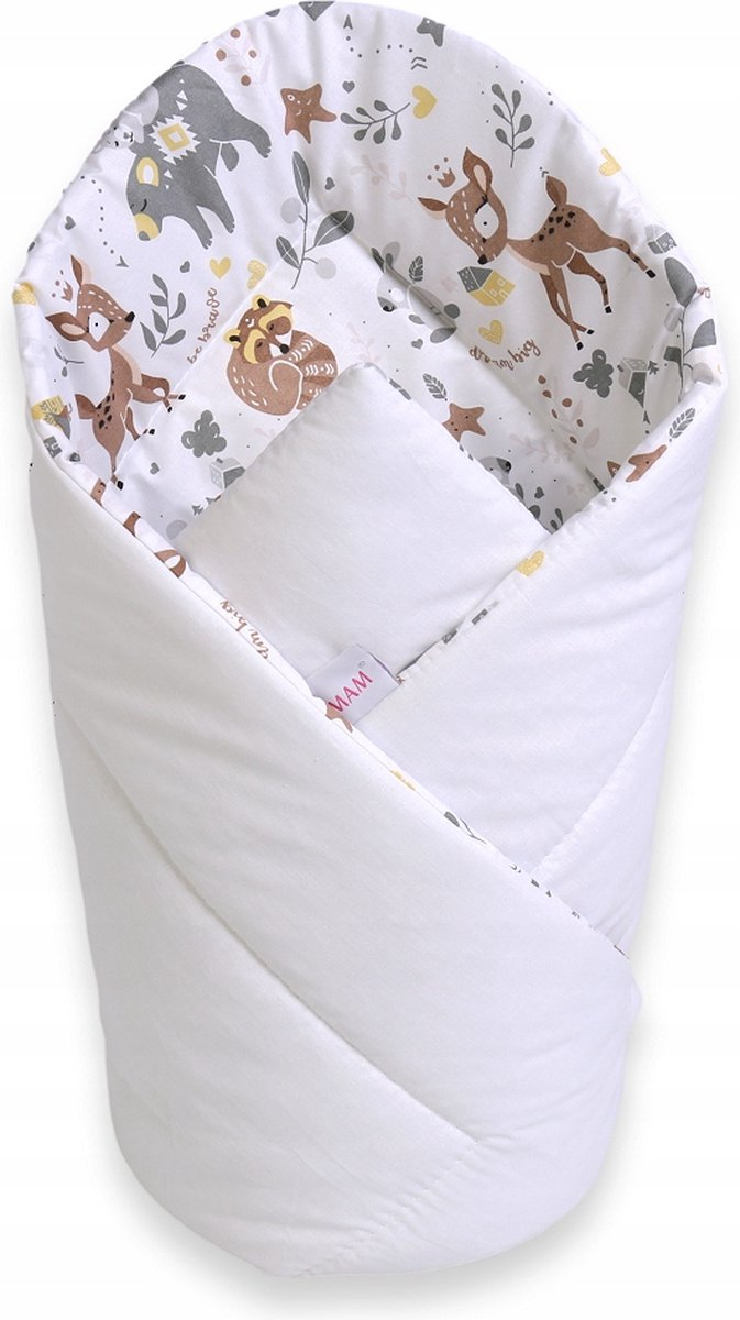 Becik zal de pasgeboren baby lief knuffelen en hem een gevoel van veiligheid geven. De swadle kan ook gebruikt worden als dubbelzijdige quilt/deken.