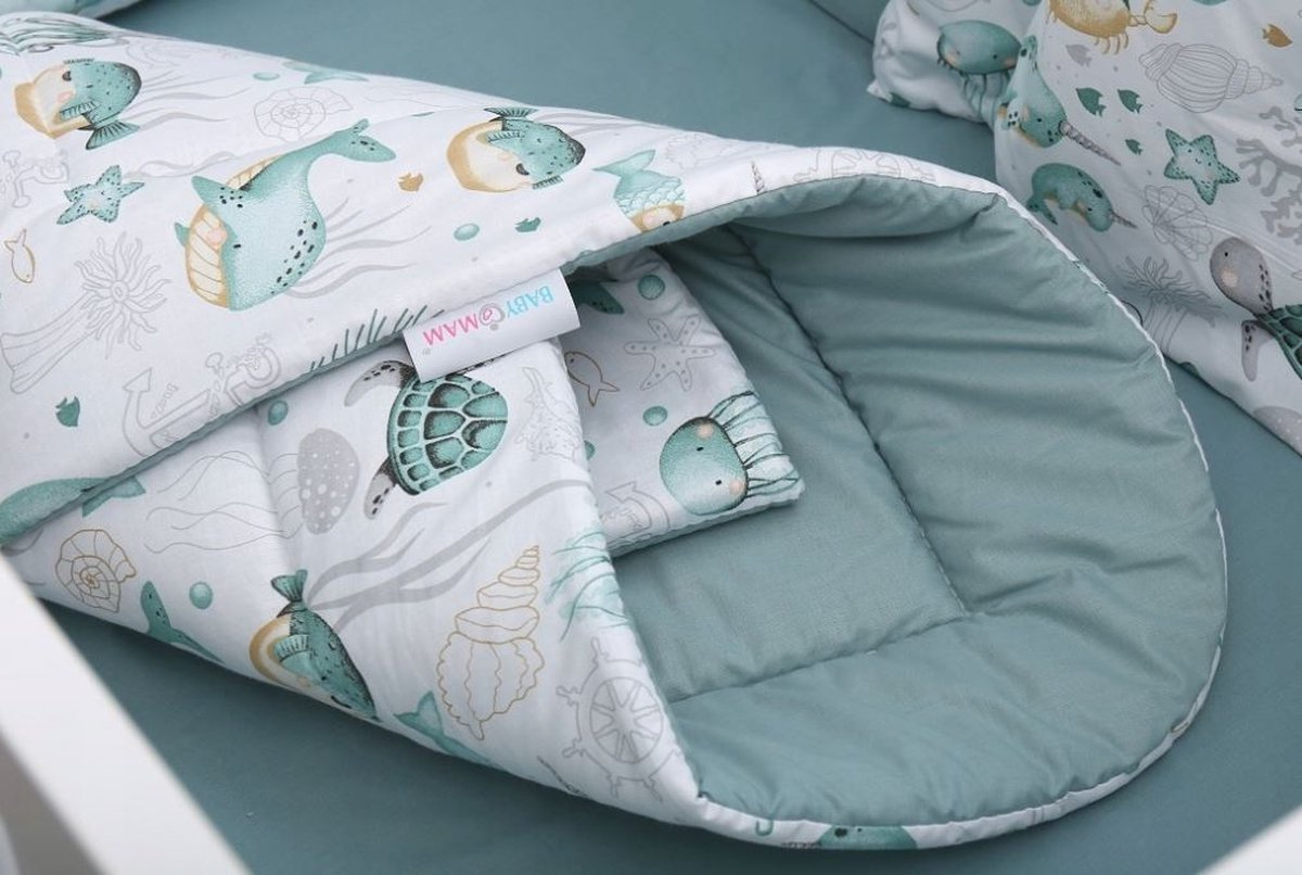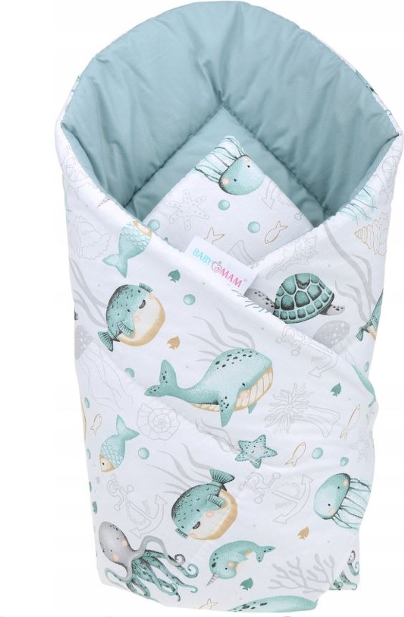 Becik zal de pasgeboren baby lief knuffelen en hem een gevoel van veiligheid geven. De swadle kan ook gebruikt worden als dubbelzijdige quilt/deken.