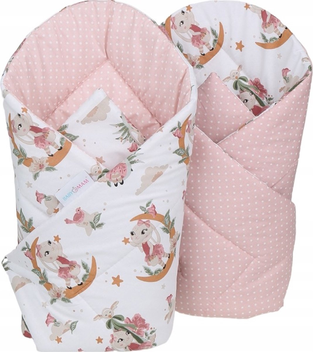 - dubbelzijdige PREMIUM inbakerdoek/swaddle met afmetingen: 80×80 cm