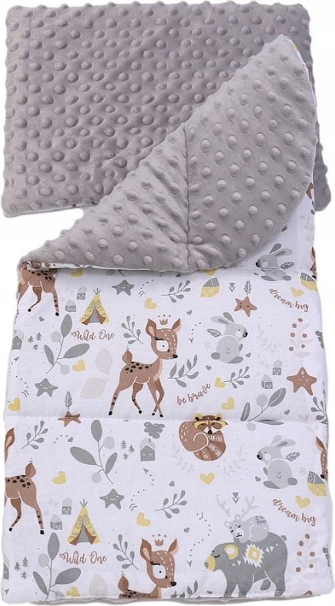 Naast de visuele kwaliteiten – een combinatie van minky en katoen (2 dekbedden in 1), is het ook een buitengewone extra functionaliteit in de vorm van de mogelijkheid om de minky kant te gebruiken op koudere dagen en de katoenen kant op warmere dagen.