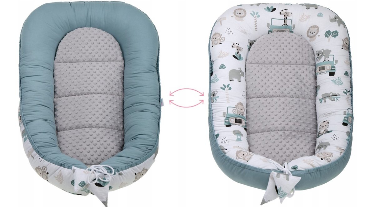 De dubbelzijdige matras, gemaakt van hoogwaardig katoen en zachte minky-stof, zorgt voor volledige hygiëne zonder de hele cocon te hoeven wassen. Het midden van de matras heeft een anti-allergische vulling. Het is licht en luchtig, wat het gebruikscomfort aanzienlijk verbetert.