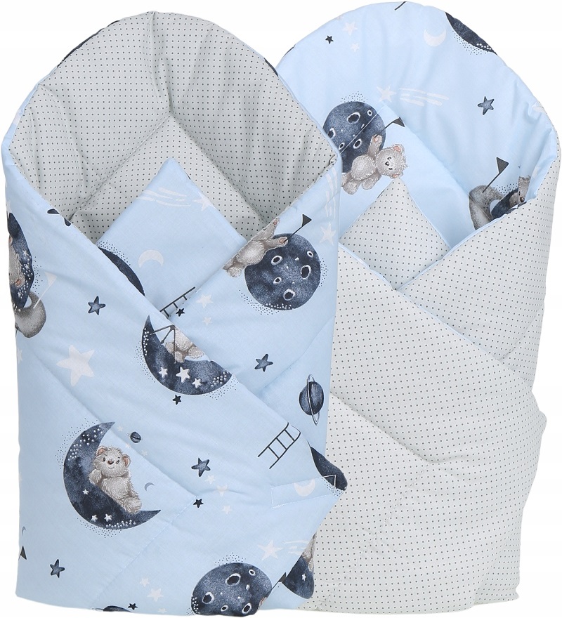 - dubbelzijdige PREMIUM inbakerdoek/swaddle met afmetingen: 80×80 cm