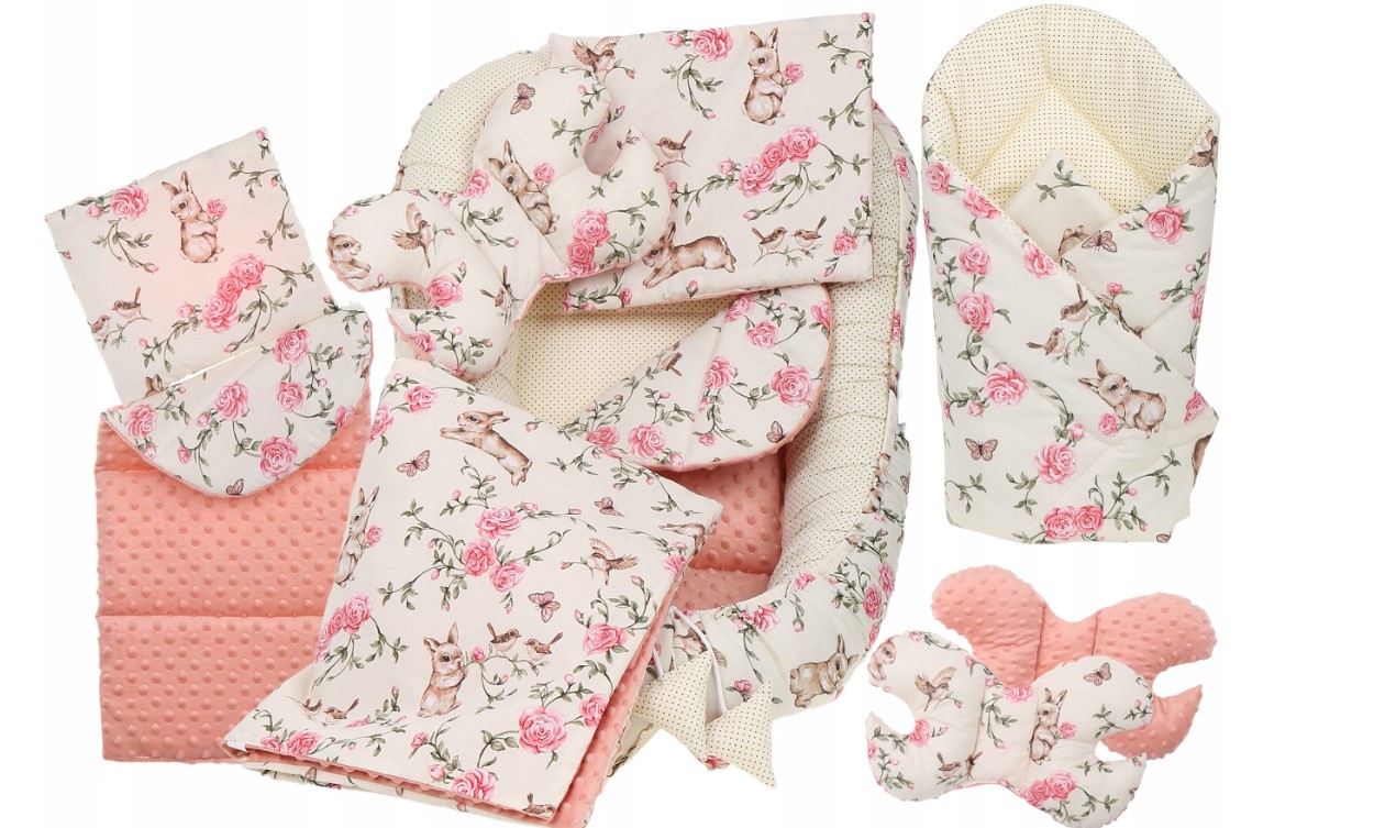 Babynestje set pasgeborenen – knuffelnest baby nestje bed set 7-delig – Konijn en Vogels- ÖKO-TEX normen
