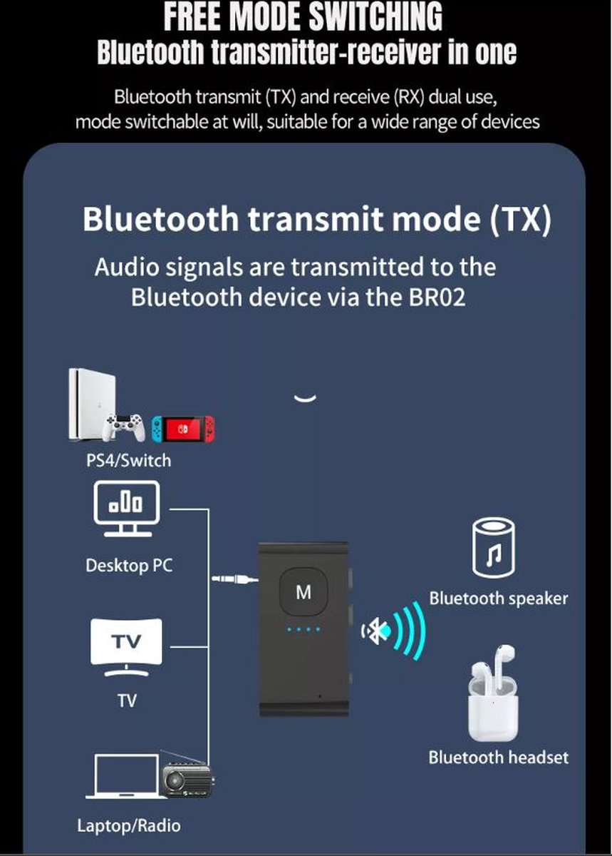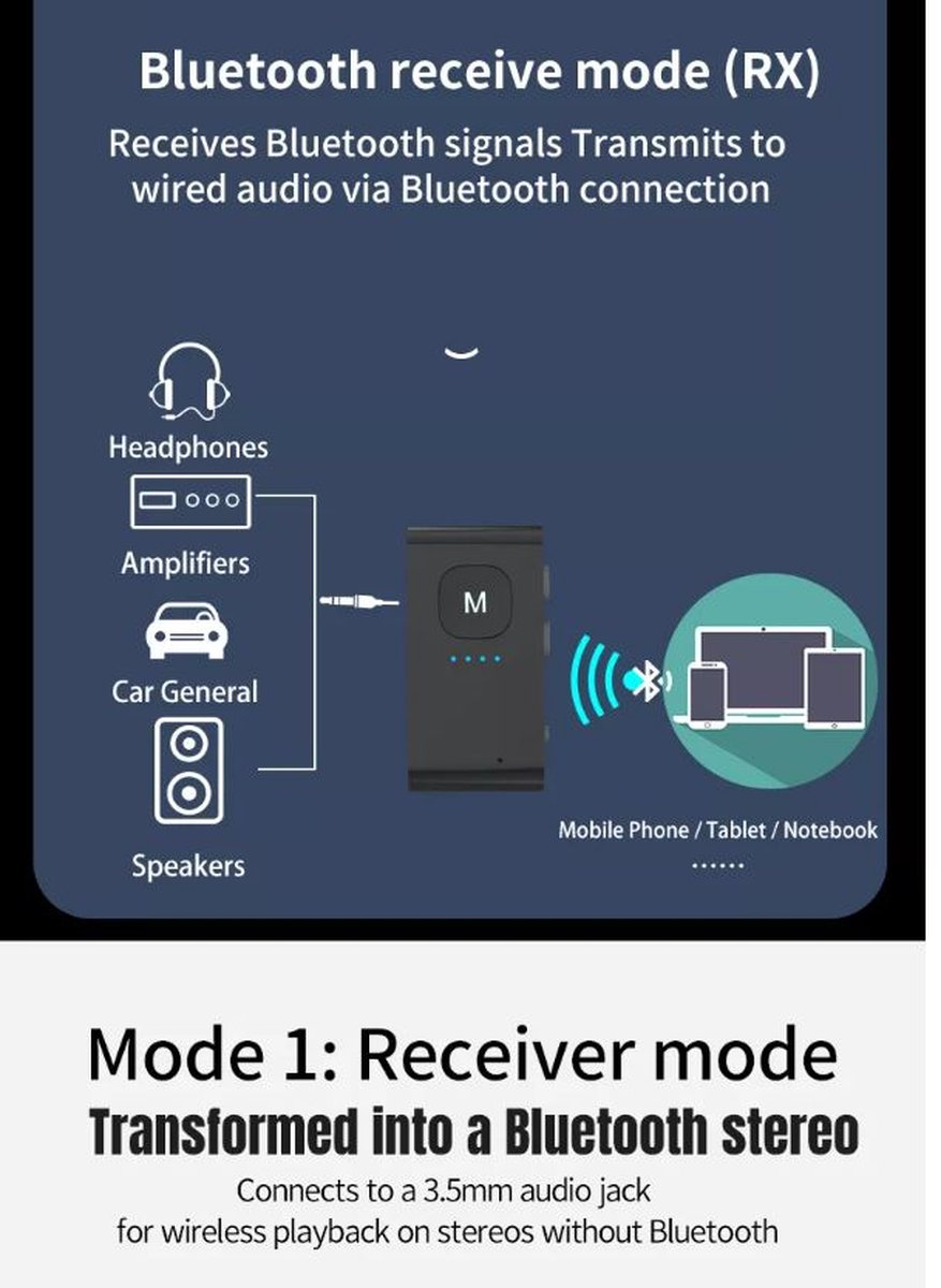 Bluetooth Transmitter & Receiver 2-in-1 -TF card playback- Wireless BT 5.0
