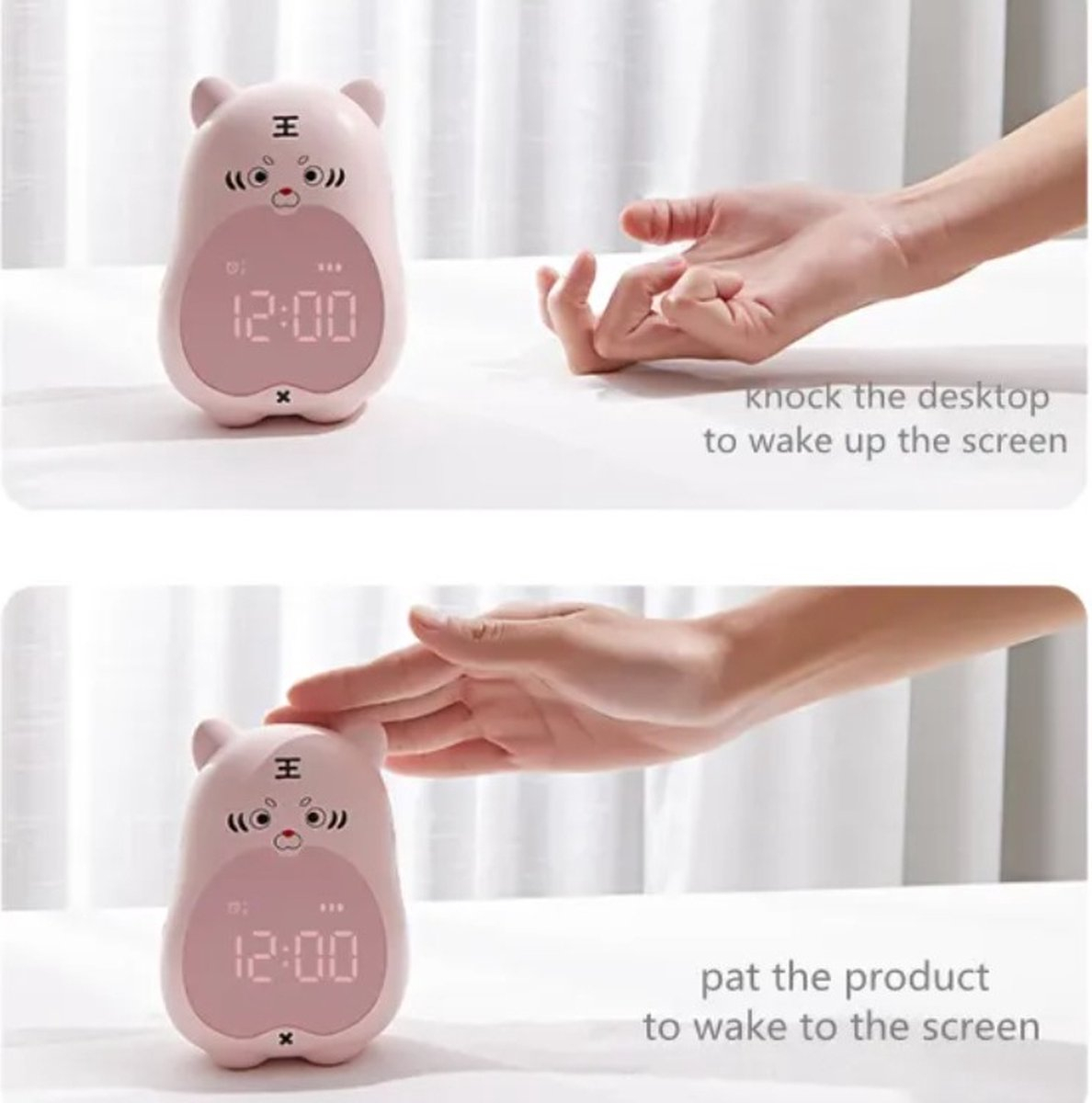 Digitale silicone slaaptrainer Wake-Up Touch Sensing Light- USB oplaadbaar nachtlampje – Roze Tijger