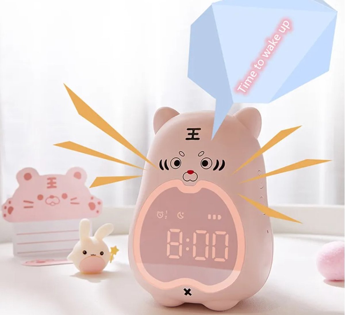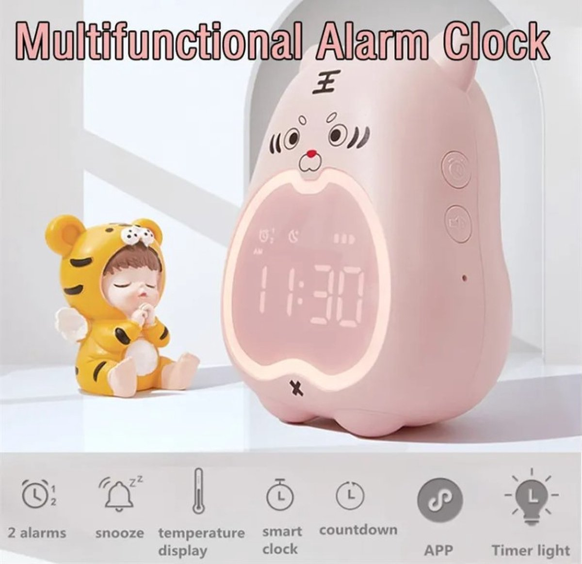 BPA-vrij en food-grade siliconen en ABS-materialen, veilig licht en wekker met tijgerontwerp voor iedereen, inclusief baby’s, het heeft ook een aangenaam en comfortabel aanraakgevoel