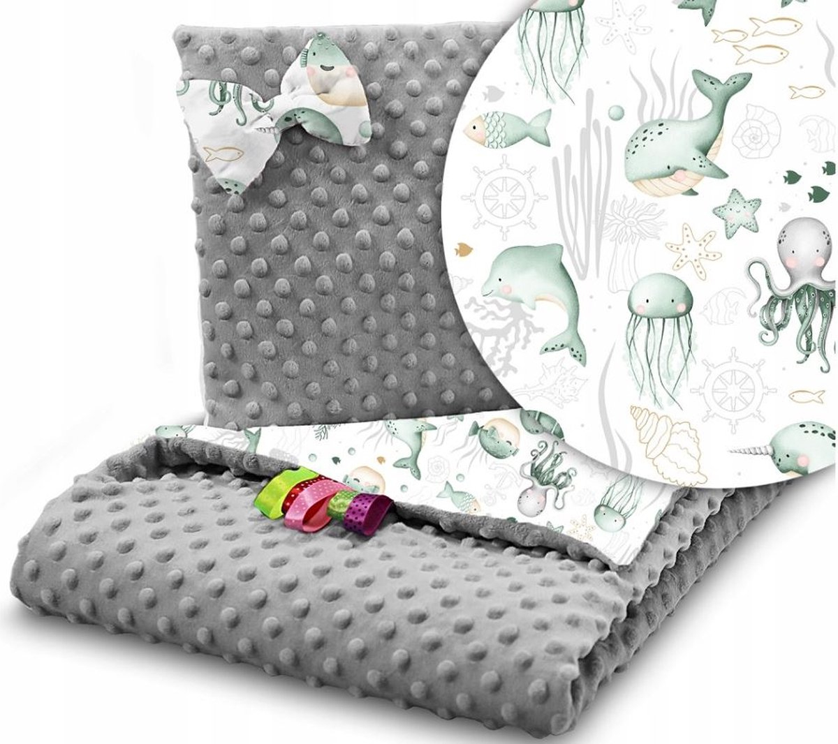 Exclusief Minky fluwelen set Deken met kussen 75x100cm- Zeeschepsel