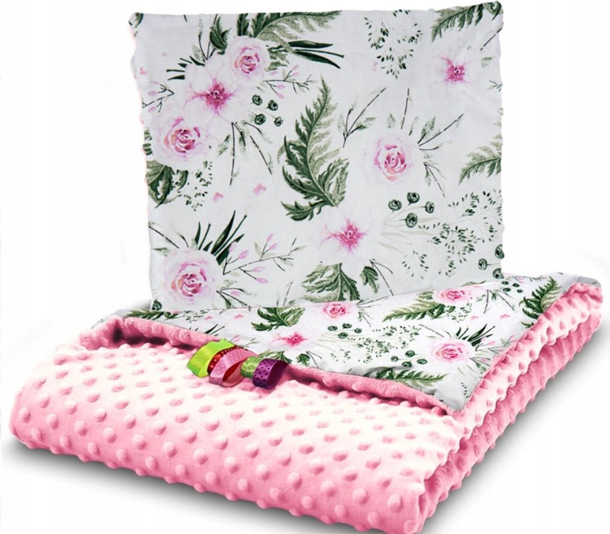 Exclusief Minky set Deken met kussen 75x100cm- Tuin bloemen