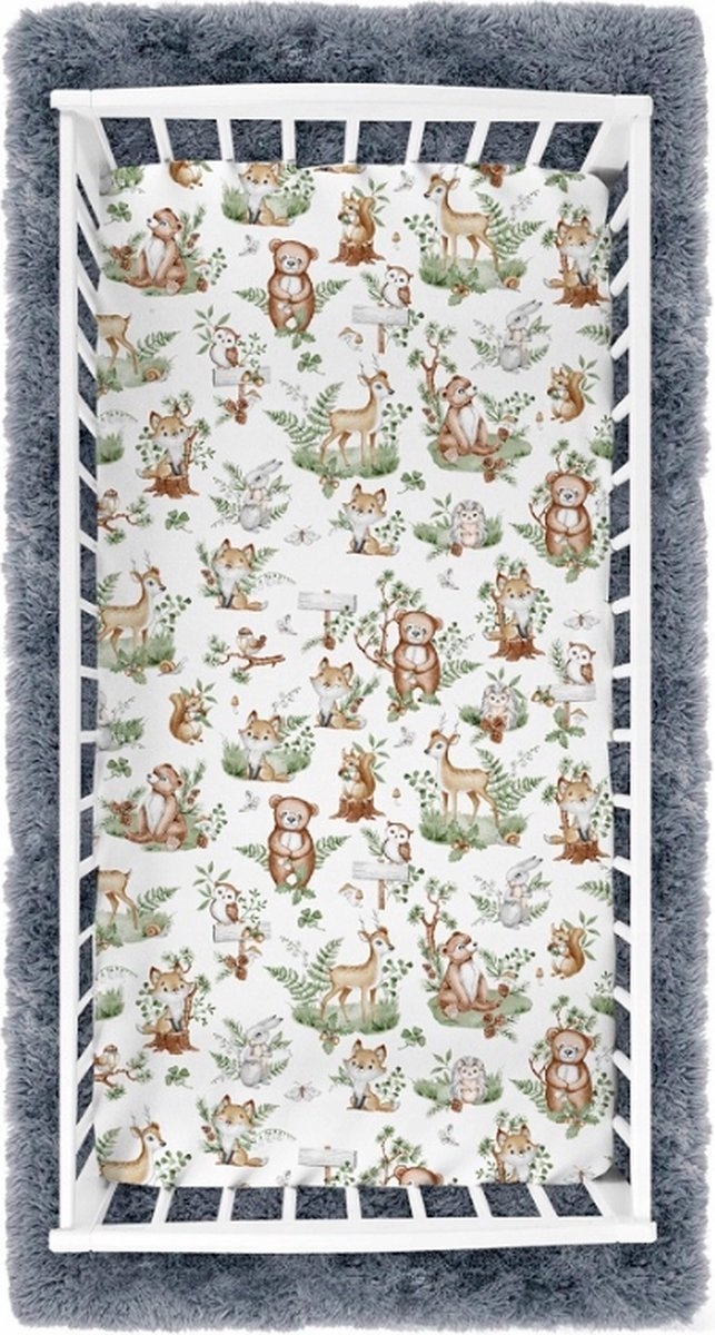 Hoeslaken ledikant 100% Katoen- Bos dieren- 60×120 cm