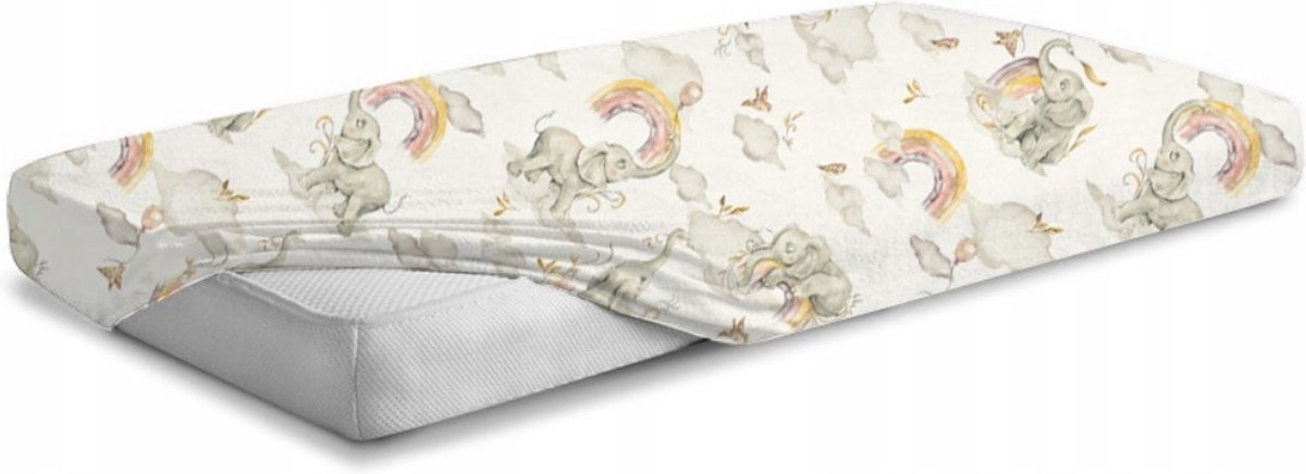 Hoeslaken ledikant 100% Katoen- Olifant ontwerp- 60×120 cm