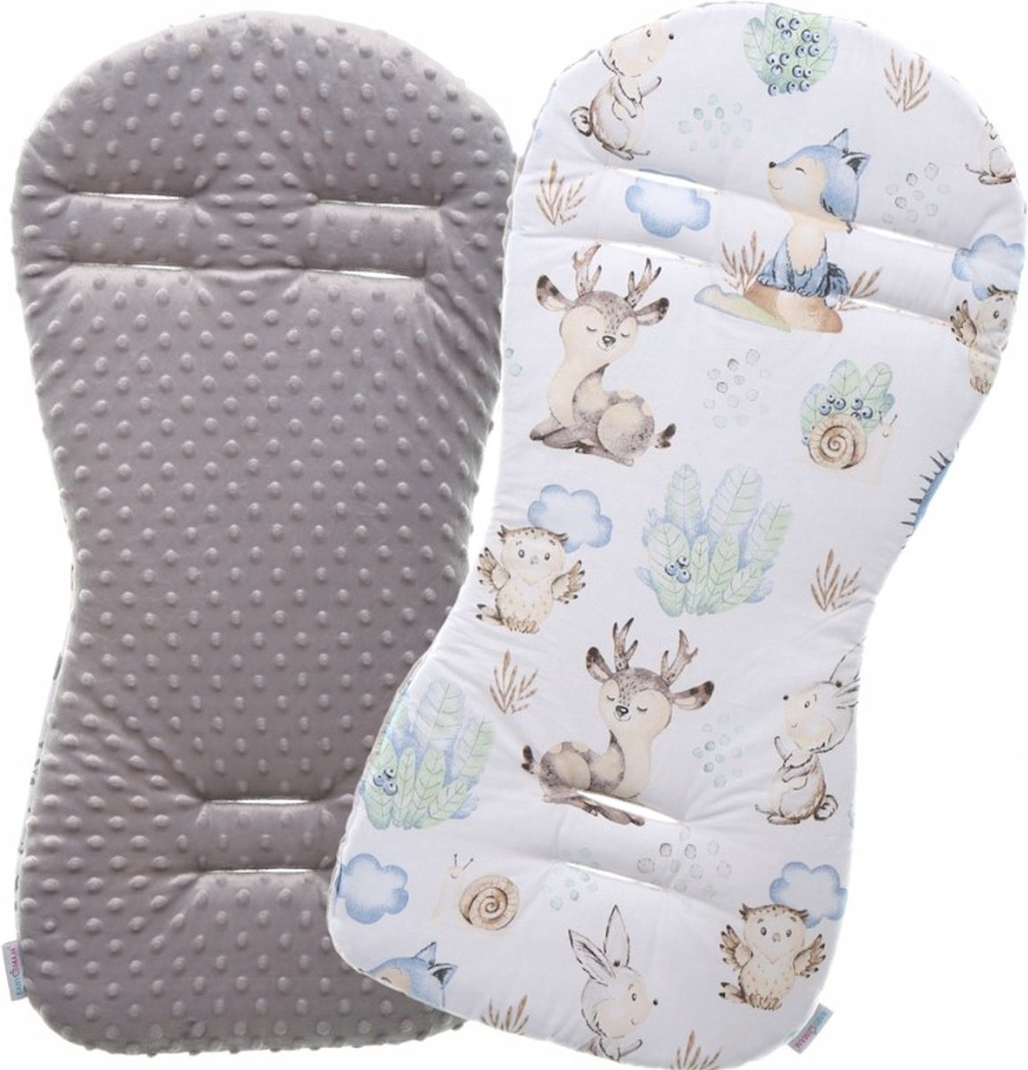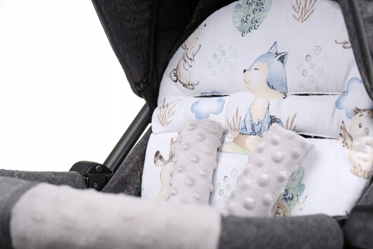 Een zachte, dubbelzijdige inzet die zorgt voor een comfortabele reis voor je kleintje, terwijl de kinderwagen wordt beschermd tegen vuil en slijtage van het interieur. Tijdens zomerse wandelingen biedt de katoenen kant bescherming tegen de onaangename bekleding van de kinderwagen en op winterdagen helpt een knuffelige minky om de juiste temperatuur te behouden.