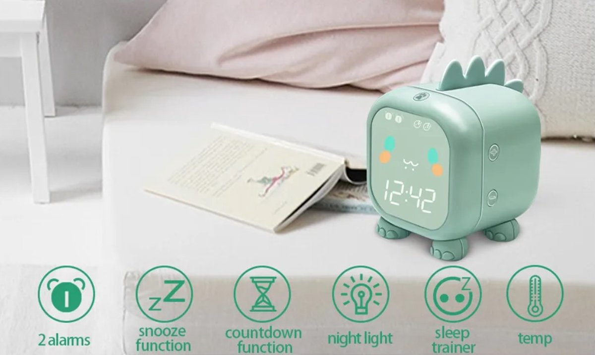 Slaaptrainer 3 in 1- wakker licht, wekker en nachtlamp- Groen Dino ontwerp