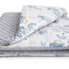 De set is dubbelzijdig, zowel het kussen als de deken zijn dubbelzijdig. Aan de ene kant met een mooie minky stof en aan de andere kant met katoenen stof.
